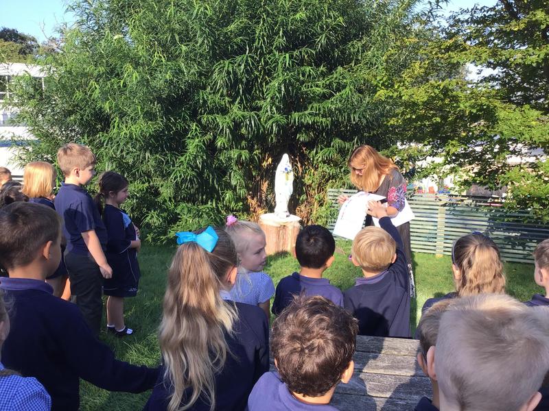 On Monday morning, we held a short service in our beautiful prayer garden. Children wrote prayers to ask Mary for her help and guidance to live their lives by our Catholic virtues. These prayers will be kept in the class prayer books for children to look at over the coming months.